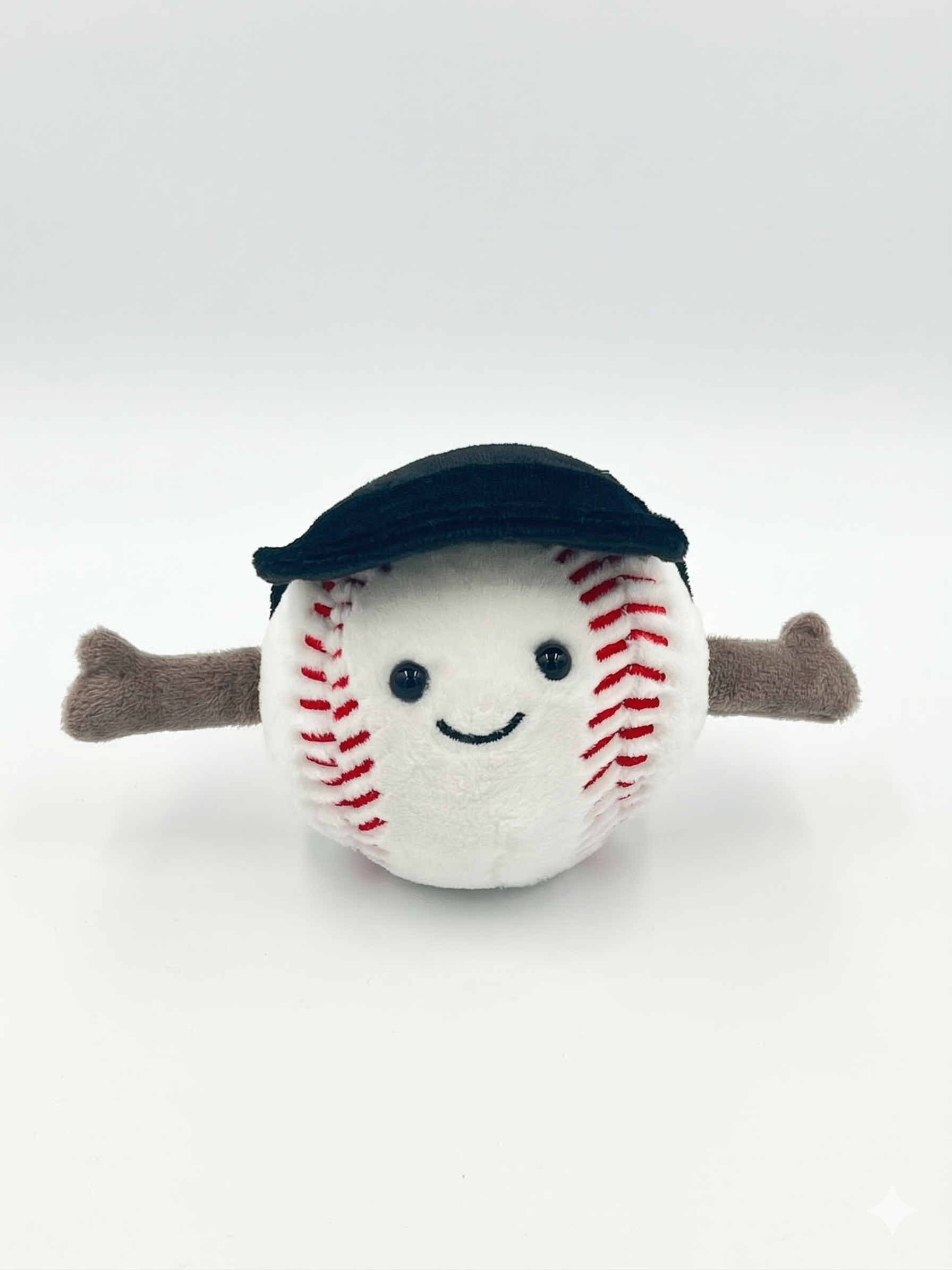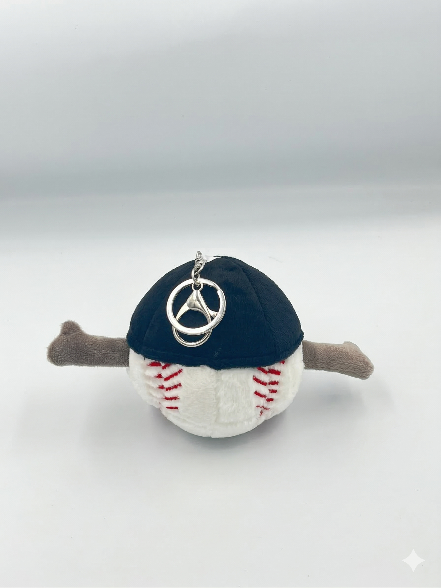 This adorable baseball plush keyring features a soft, high-quality finish with a friendly embroidered face and a sporty black cap. Perfect for sports fans of all ages, it comes with a durable metal clip to easily add a touch of personality to your keys, backpack, or gym bag.